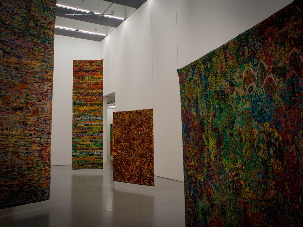 From the moment you step inside, you are enveloped in a kaleidoscope of colors, textures, and narratives that pulse with life and resilience. Pacita Abad’s work, renowned for its intricate patchworks and vivid use of mixed media, challenges the boundaries of traditional art forms while giving voice to those often overlooked by society.